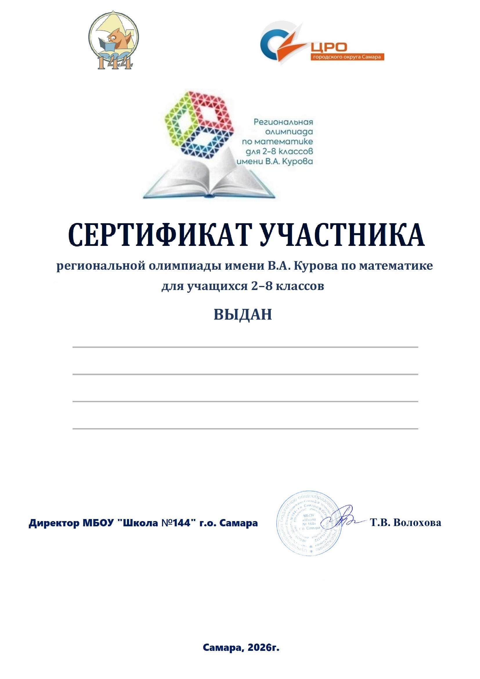 - страница «Олимпиада им. В.А. Курова 2022-2023» сайта МБОУ Школа № 144 имени